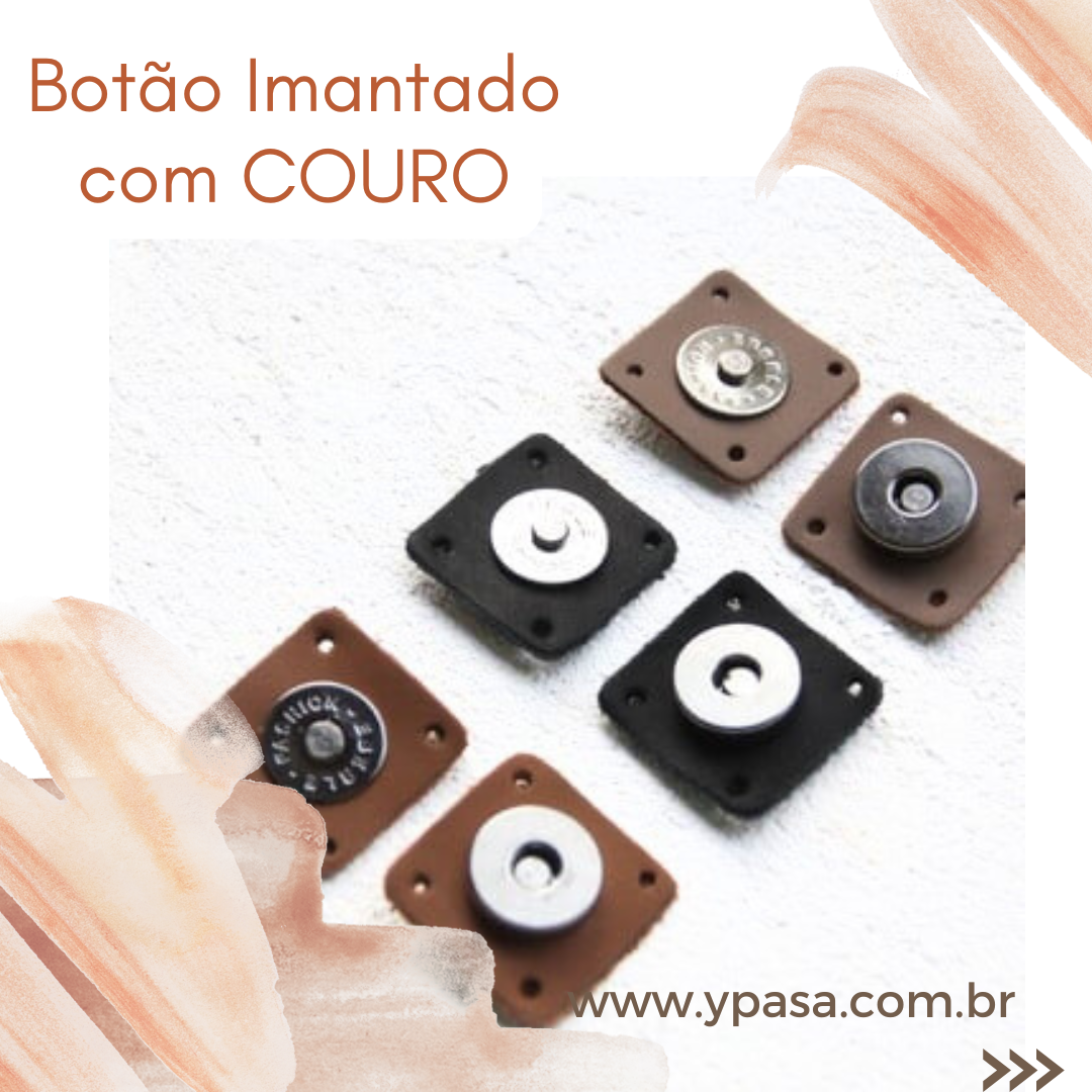 🧲 Botão Magnético de Couro Ecológico 3,5x3,5 cm – 4 furos
