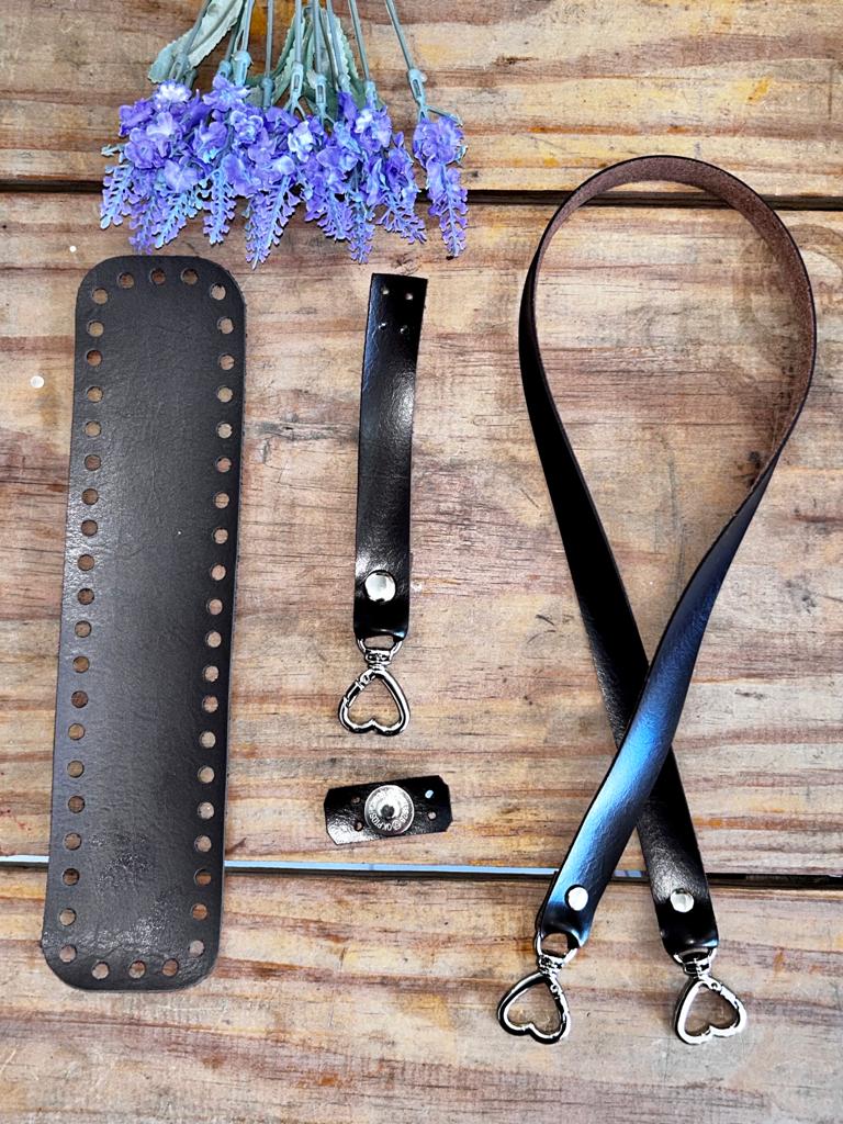 KIT LOVE MARROM: Alça + Fundo 25X6cm + Fecho couro ecológico para bolsas
